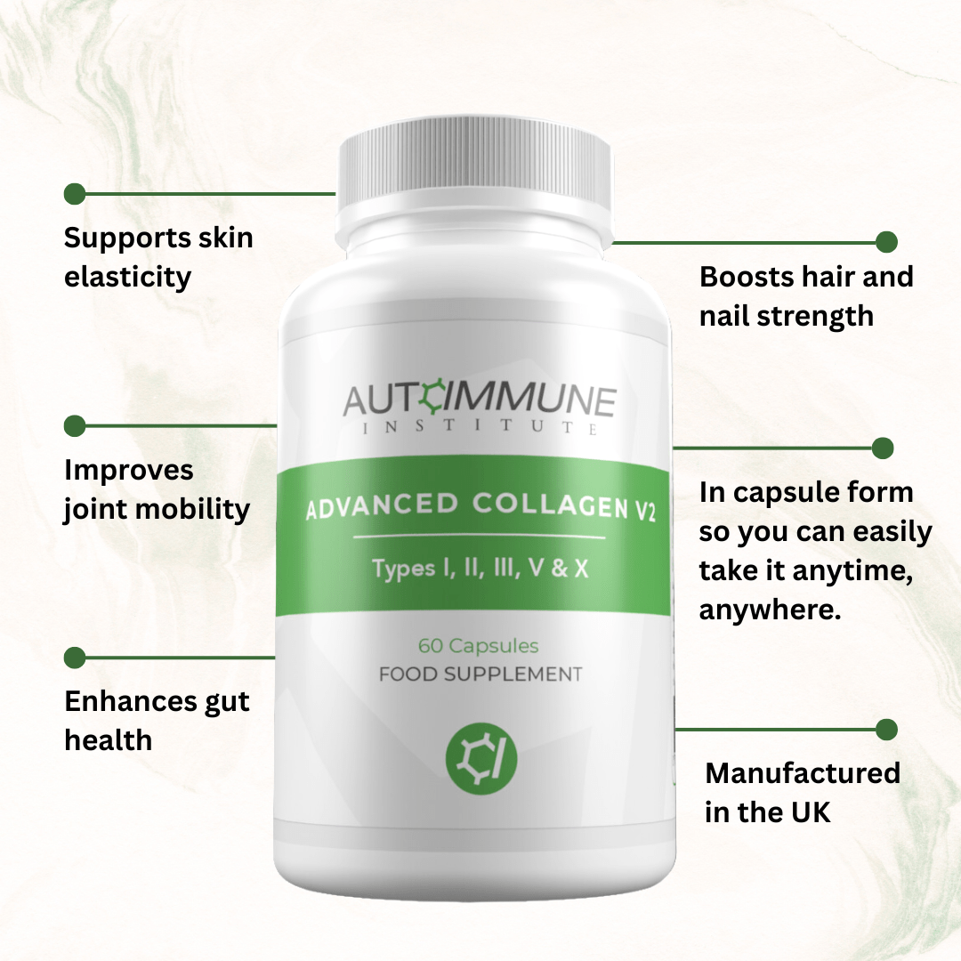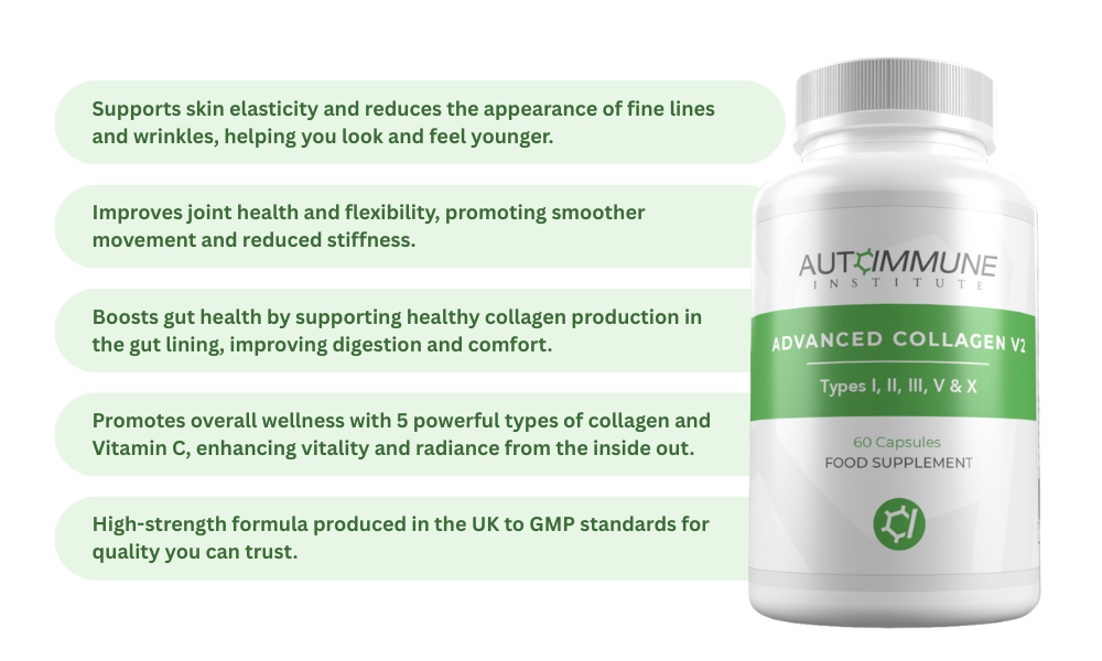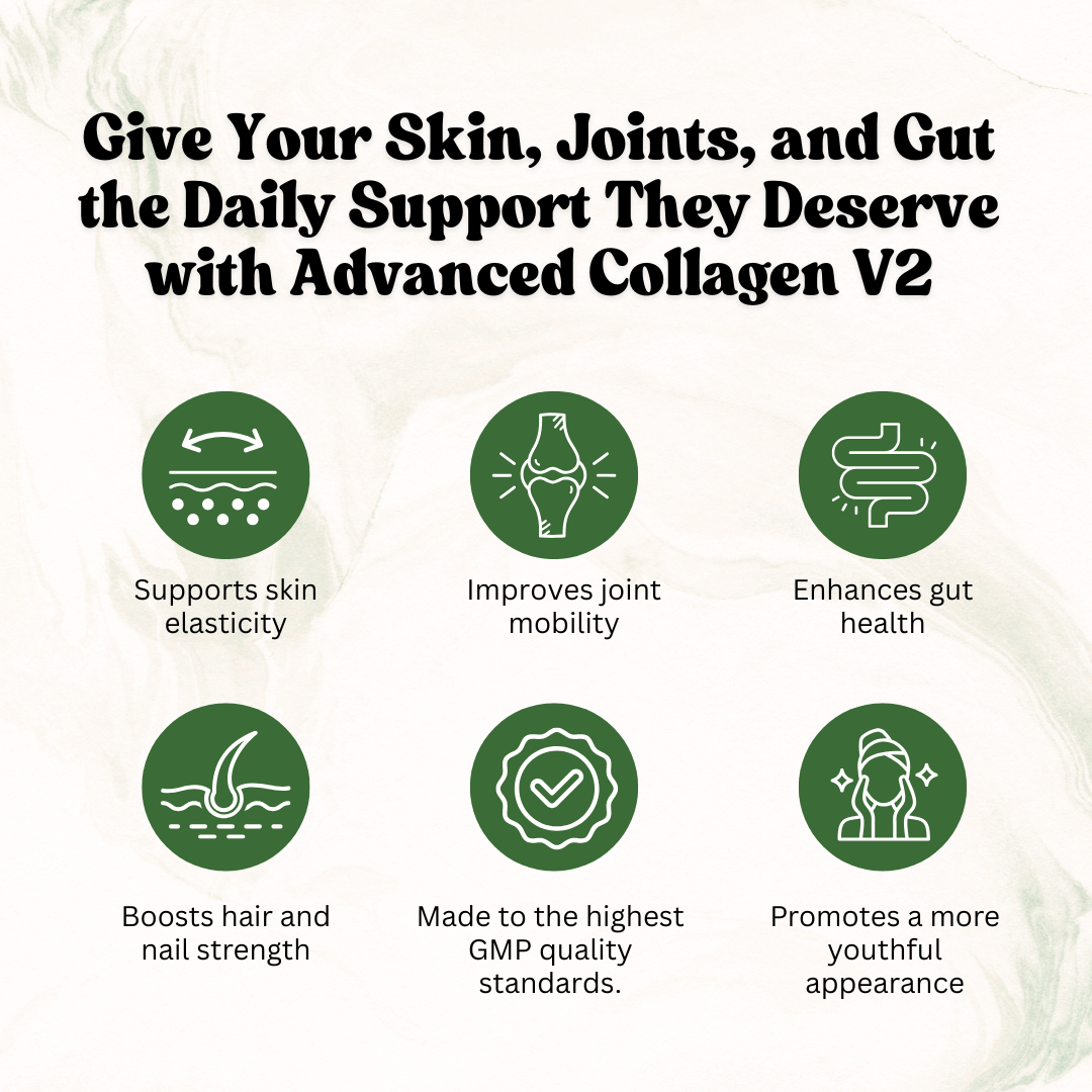 Advanced Collagen V2 is ideal for anyone looking to support skin health, reduce wrinkles, promote joint health, and enhance gut wellness. It’s especially beneficial for those experiencing joint discomfort or those looking for anti-aging support.