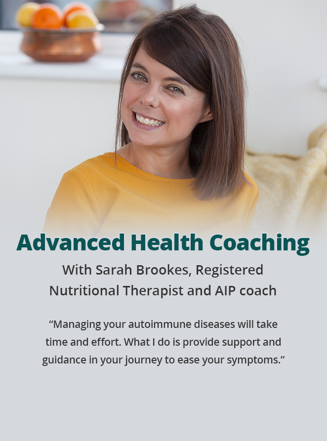 Sarah Brookes is a Registered Nutritional Therapist & AIP Coach. She is qualified to give health advice to her clients in order manage their chronic and autoimmune conditions and achieve balanced health for their mind, body and spirit.